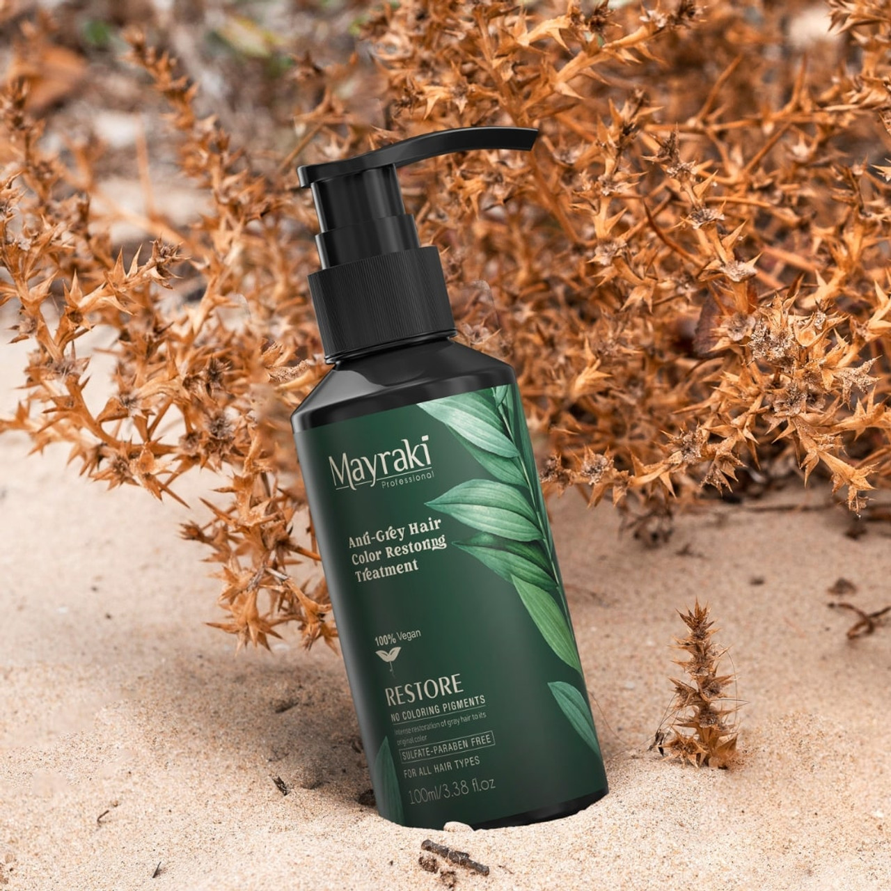- Option 1 - After washing hair: Shampoo wash and towel dry. Apply a few pumps of Anti-gray Hair Color Restoring Treatment onto your palm. Use your fingers to gently massage your scalp and evenly spread the treatment into your hair roots.